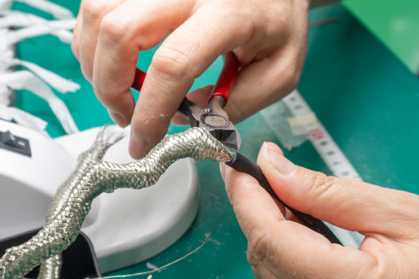 あらかじめ加工された電線や部品を設計図面や治具に沿ってまとめ、最終製品として形にする重要な工程です。
